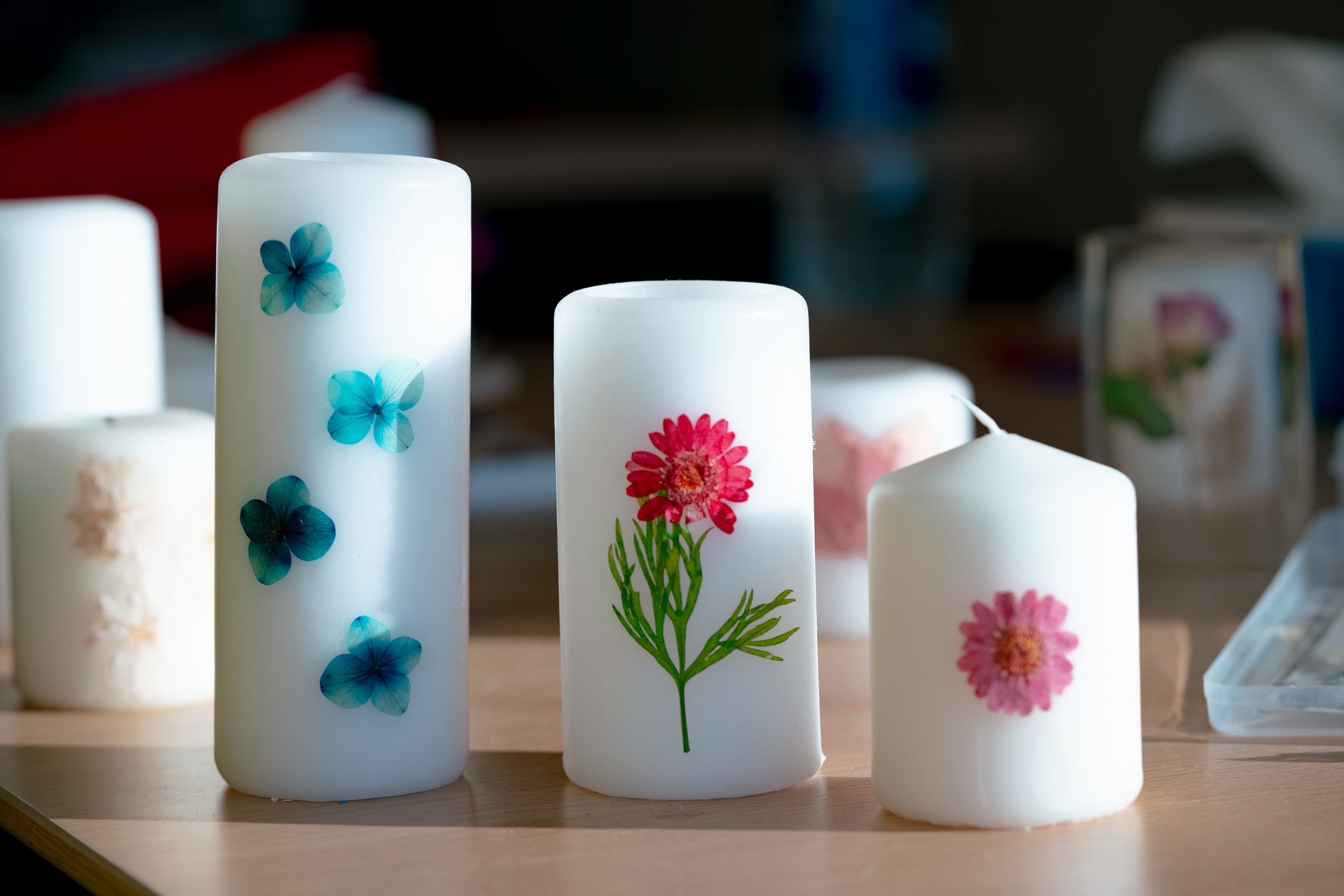 تتضمن الورشة صناعة أعمال فنية باستخدام ورد سبق تجفيفه وتوفيره.